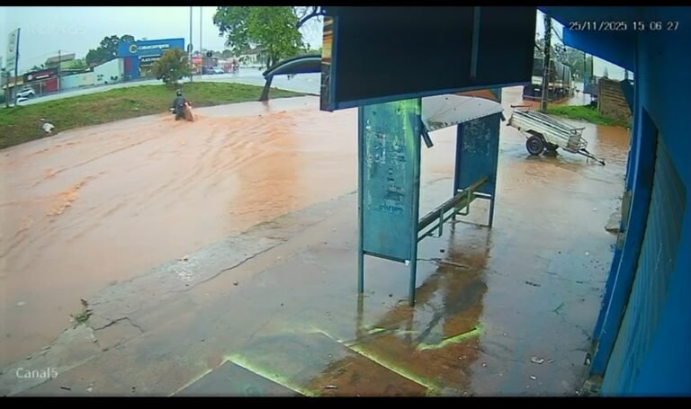 Na tarde desta terça-feira (25), um motociclista acabou caindo dentro