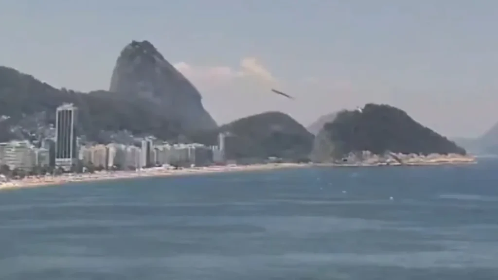 De acordo com os bombeiros, equipes do quartel de Copacabana foram acionadas por volta das 12h34. A operação contou com motos aquáticas, embarcações, mergulhadores e o apoio de um helicóptero para buscas no mar. No momento da queda, havia banhistas, além de motos aquáticas e outras embarcações na água.